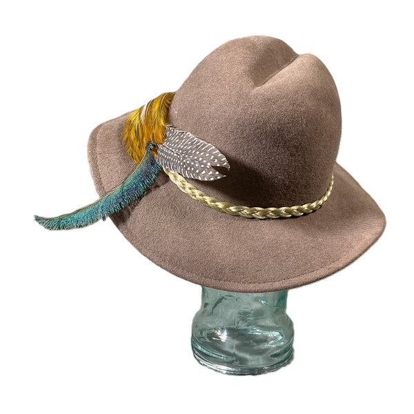 Vintage Taupe Lancaster Wool Fedora Hat w/Feathers
