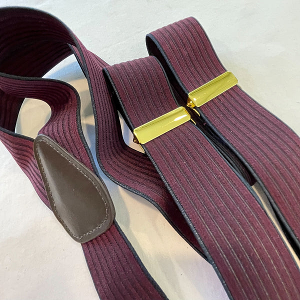 SOLD Vintage Gillman Burgundy Suspenders, Stretchy with Brass Clips