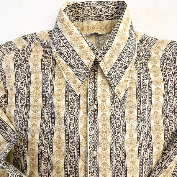 SOLD Vintage 70s Cotton Hippie Shirt, Mod Floral Print Large Pointed Collar M