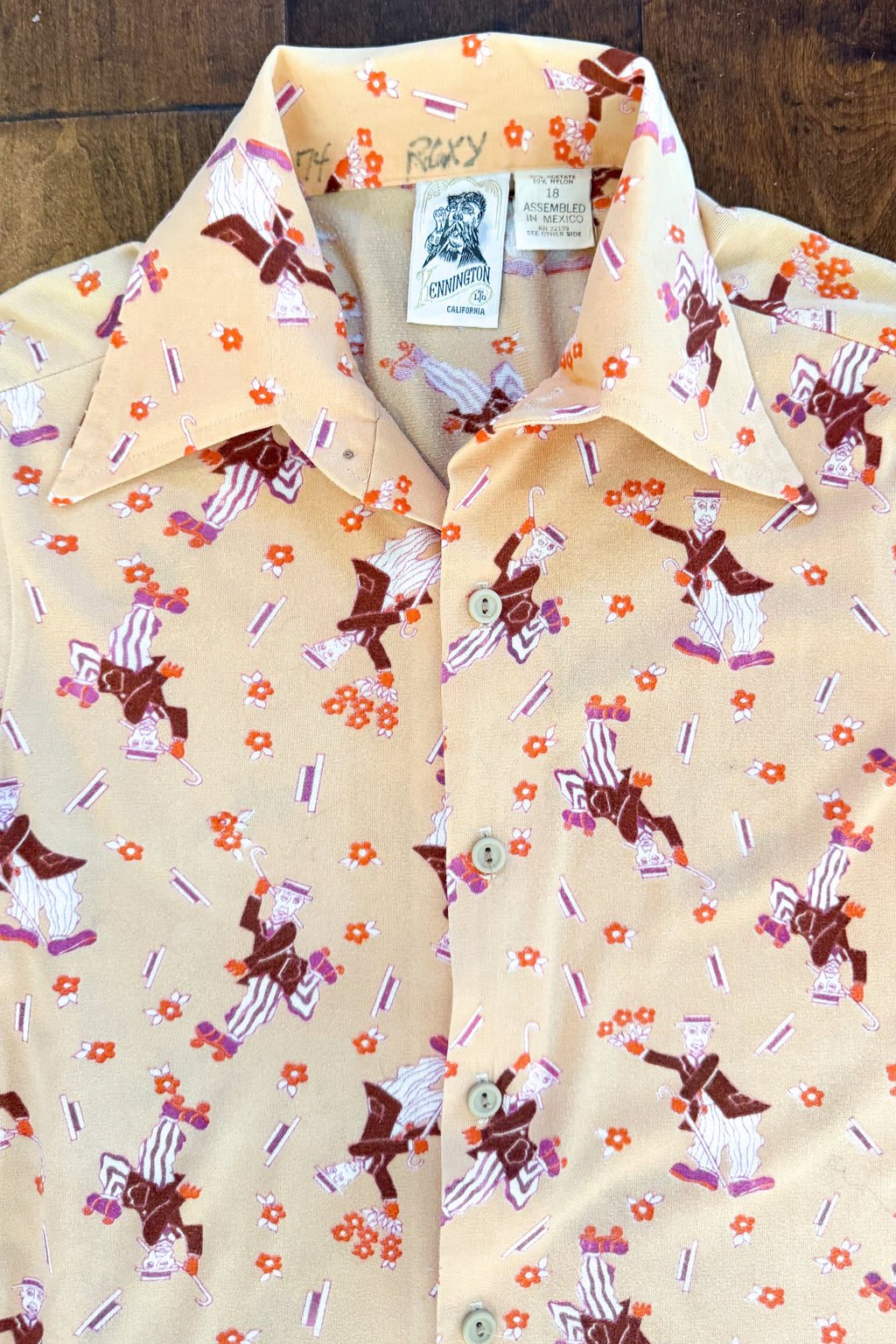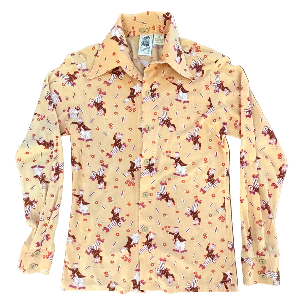 CONDITION: Good preowned vintage. A little color shifting in some areas. A small hole on the backside near neckline has been patched. Clean and ready to wear.
