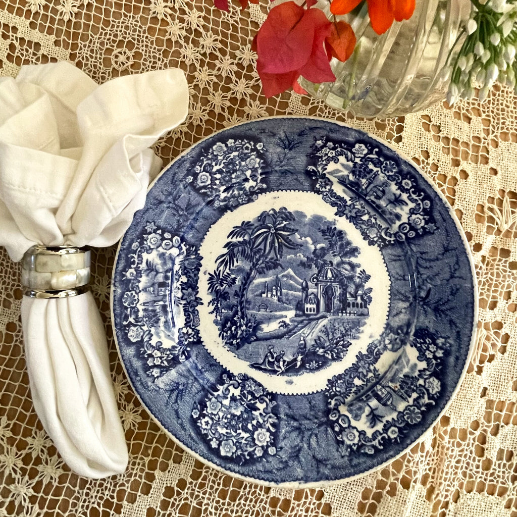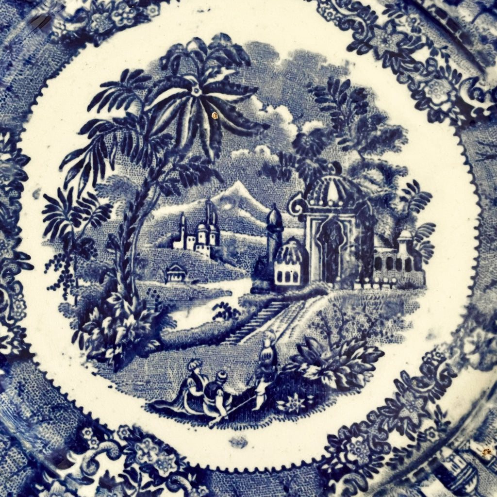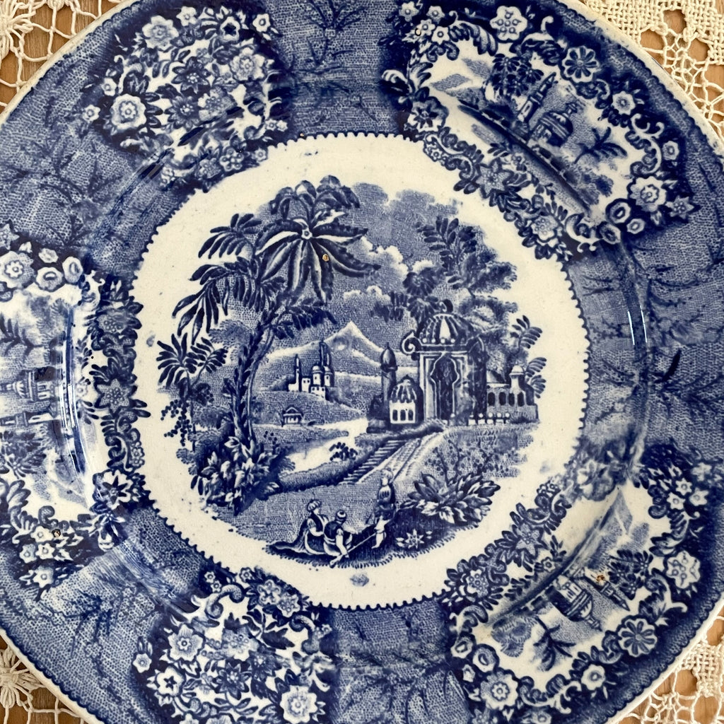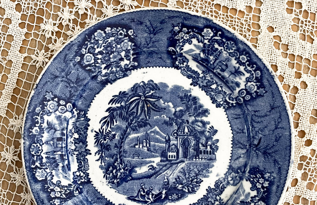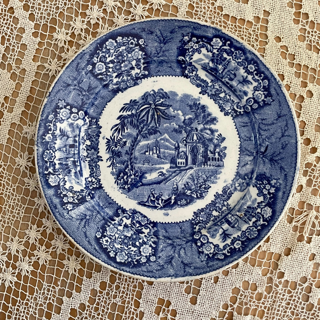 Antique blue and white transferware plate.