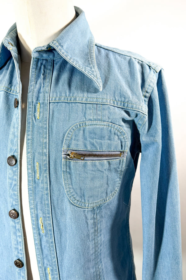 Vintage 60s/70s Embroidered Denim Jacket, OOAK, Maverick 38