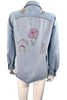 Vintage 70s cotton denim shirt/blouse with hand stitched OOAK embroidery.