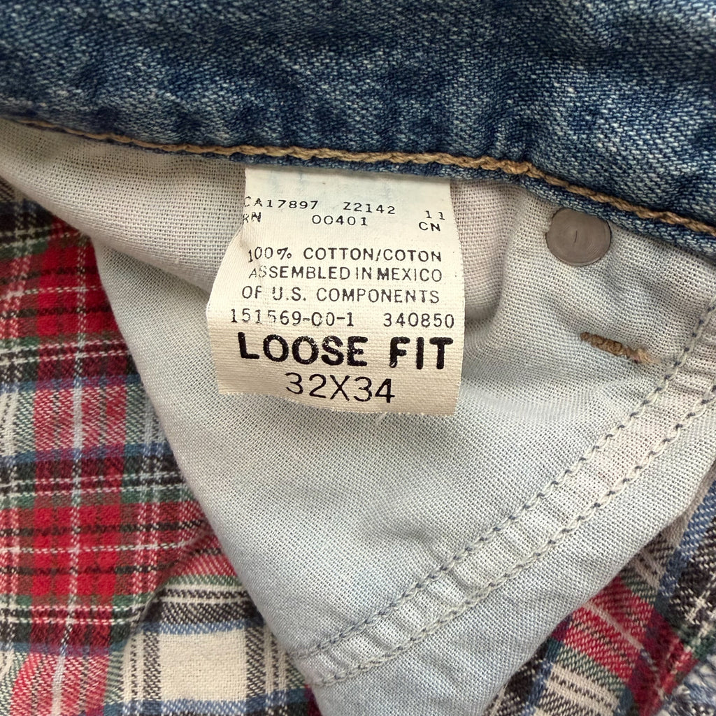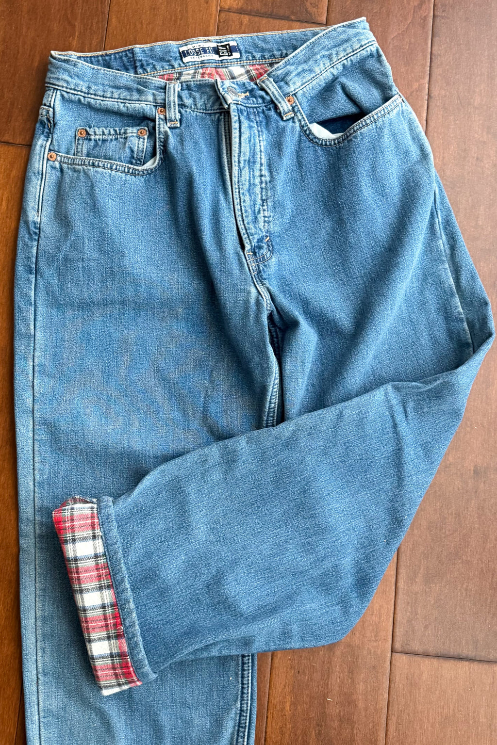 Vintage 90s Gap grunge loose fit jeans with plaid lining.