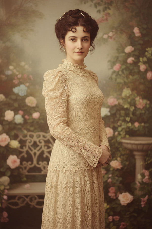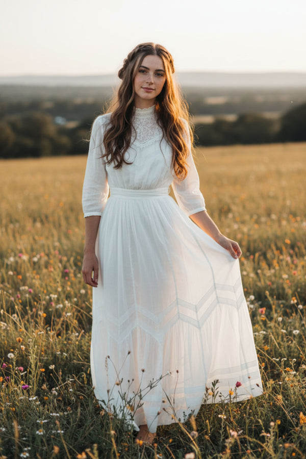 Antique/Vintage Victorian/Edwardian Lace Maxi Dress, Cottagecore Wedding Dress S