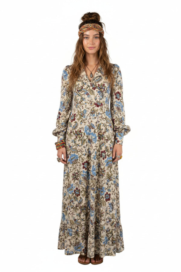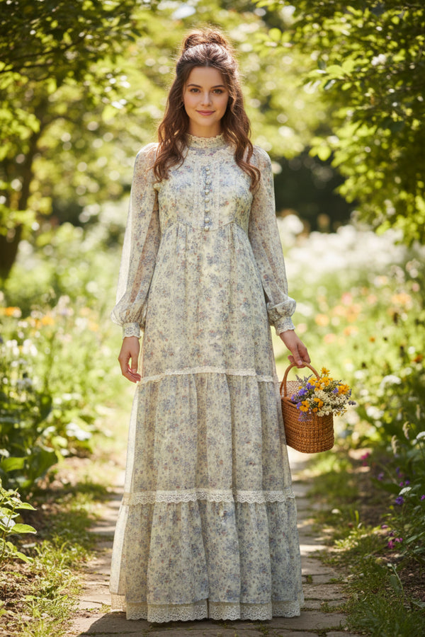 Vintage Floral Maxi Dress, Cottagecore Prairie Hippie Dress, California Holiday S