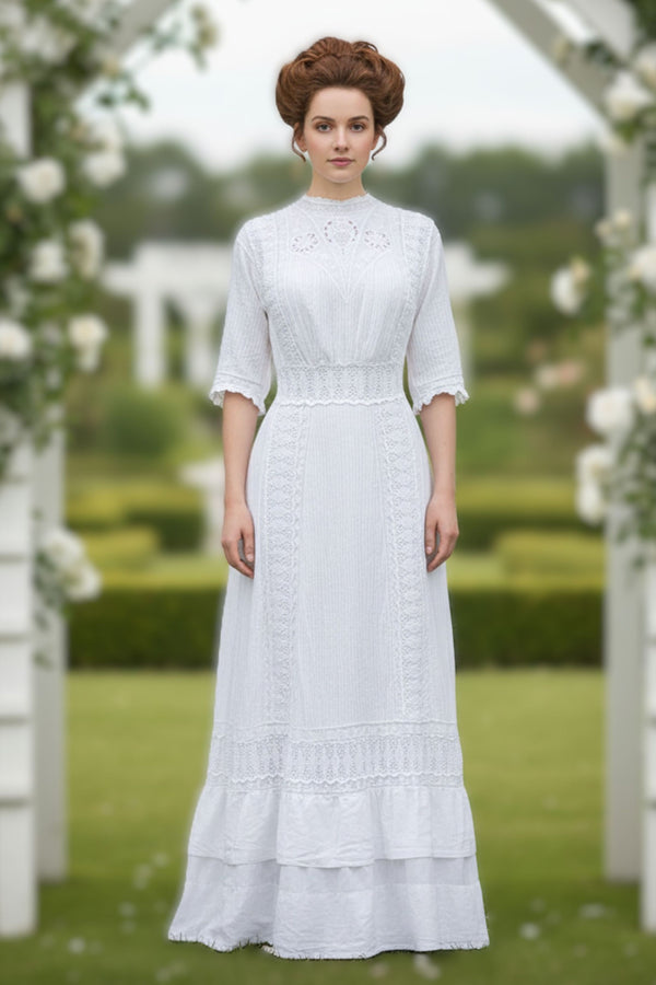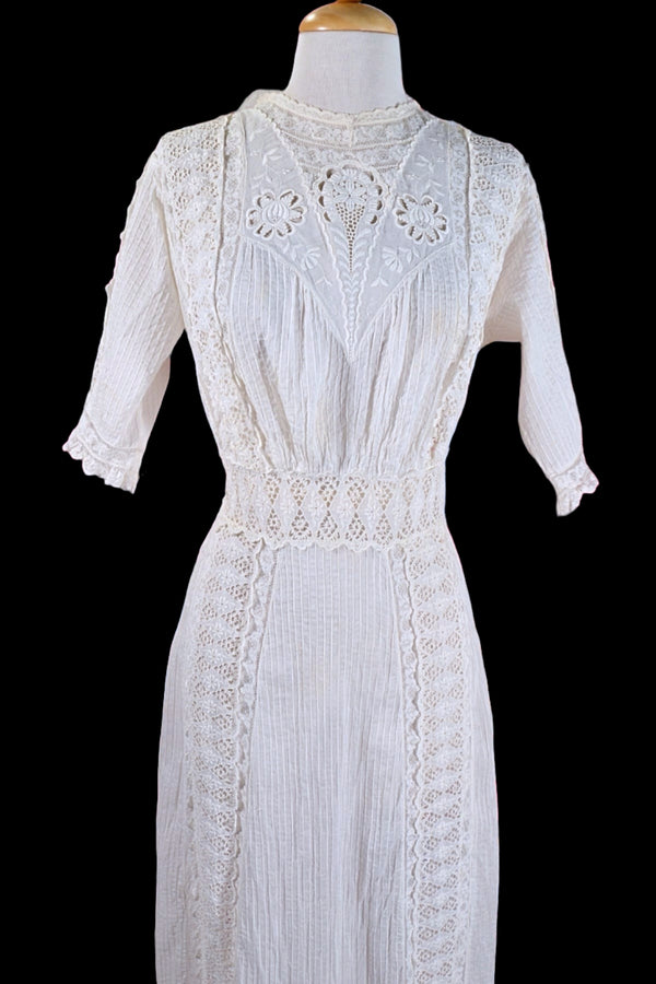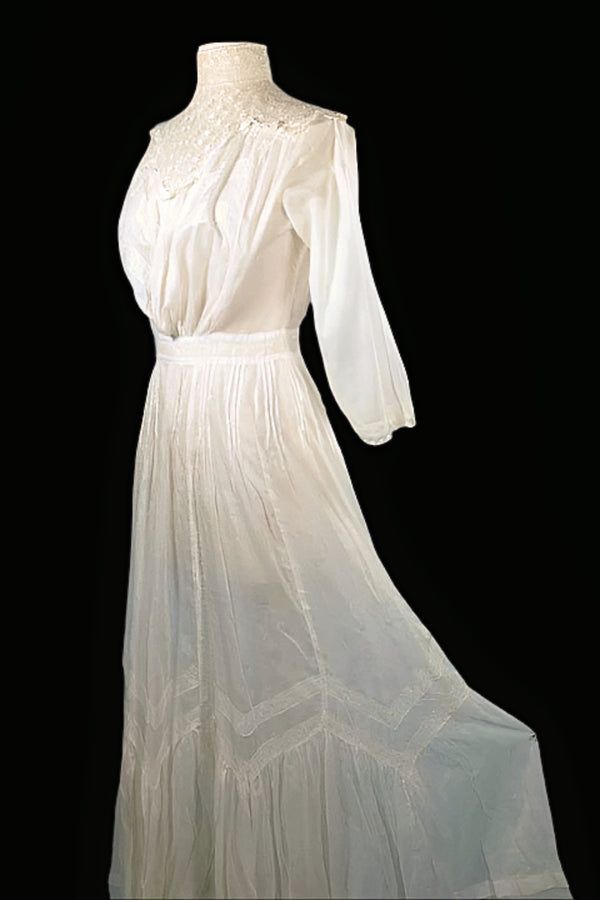 Antique White Lace Edwardian Dress, Vintage Lawn Dress