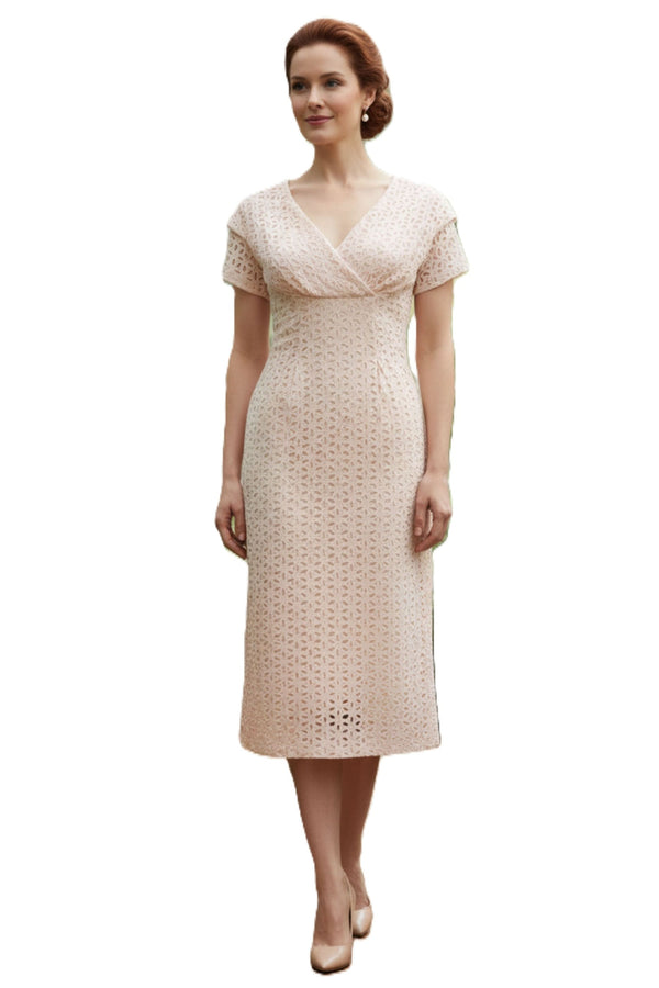 50s Eyelet Lace Dress, Cream Lace/Peach Lining M