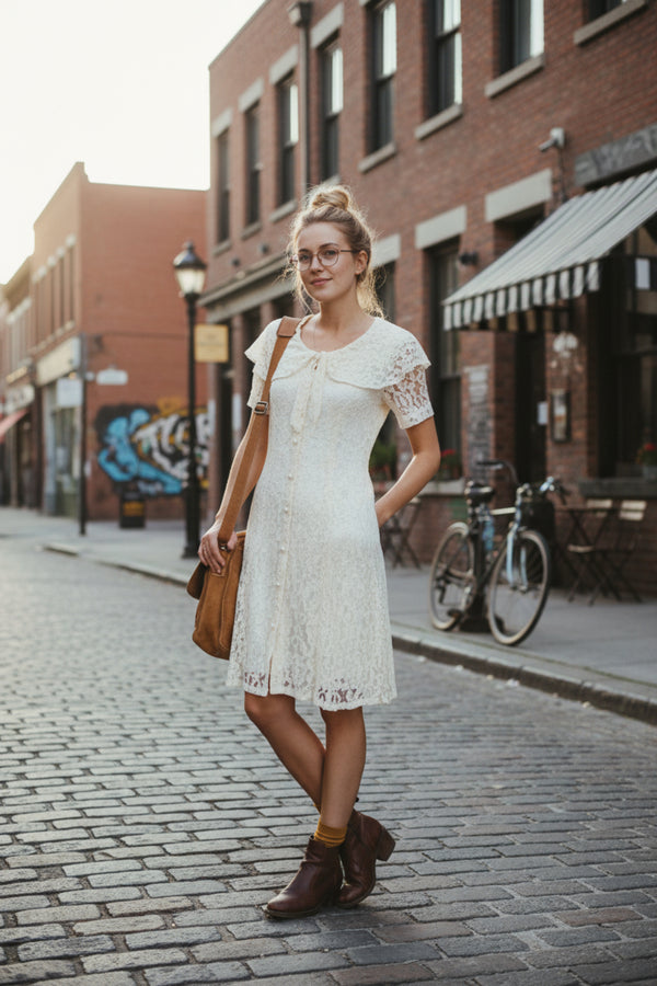 Vintage Lace Victorian Style Dress, Ecru Lace Party Dress + Slip S