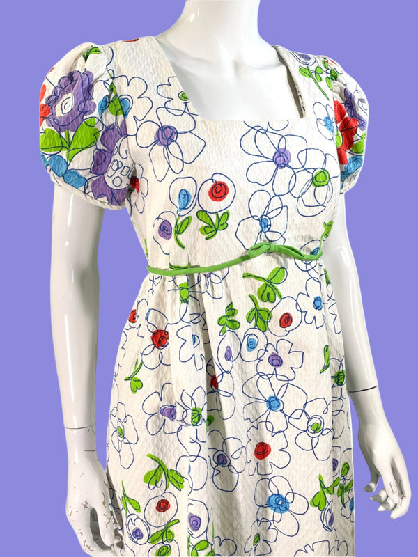 Alex Coleman 60s Mod Hippie Maxi Dress, Empire Waist Floral Print Dress
