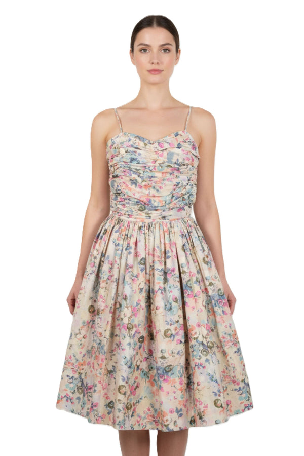 Vintage 50s Fit + Flare Pink Floral Full Skirt Dress Petite Junior XXS/XS