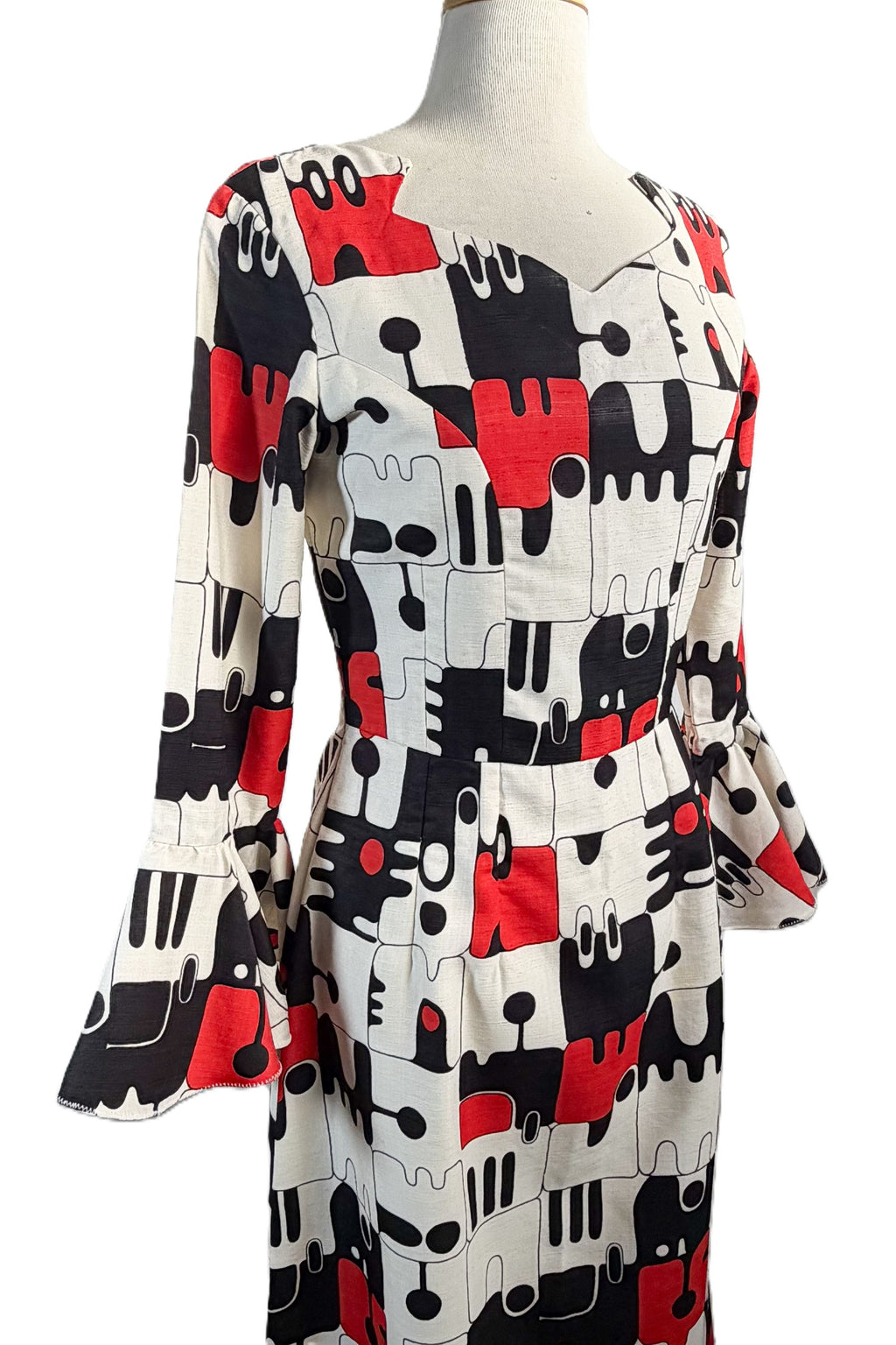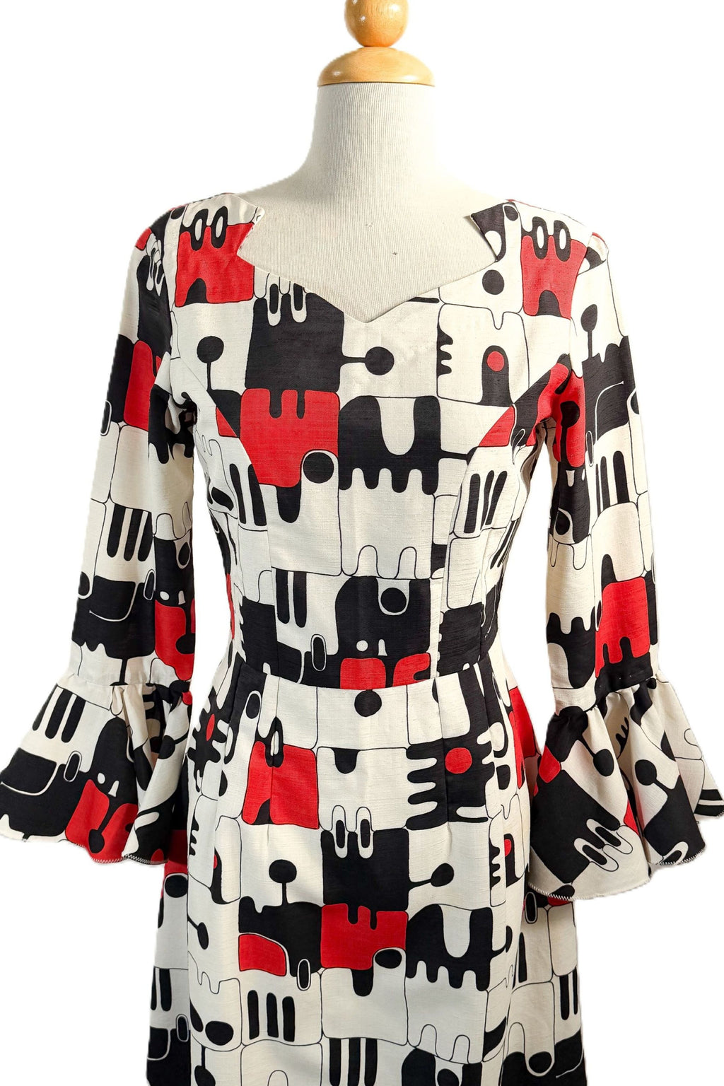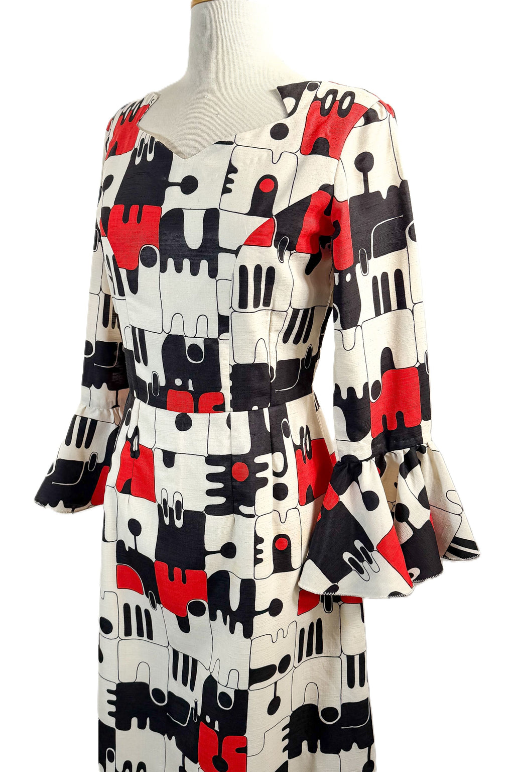 Amazing vintage 60s Mod dress with full circle ruffle sleeve.