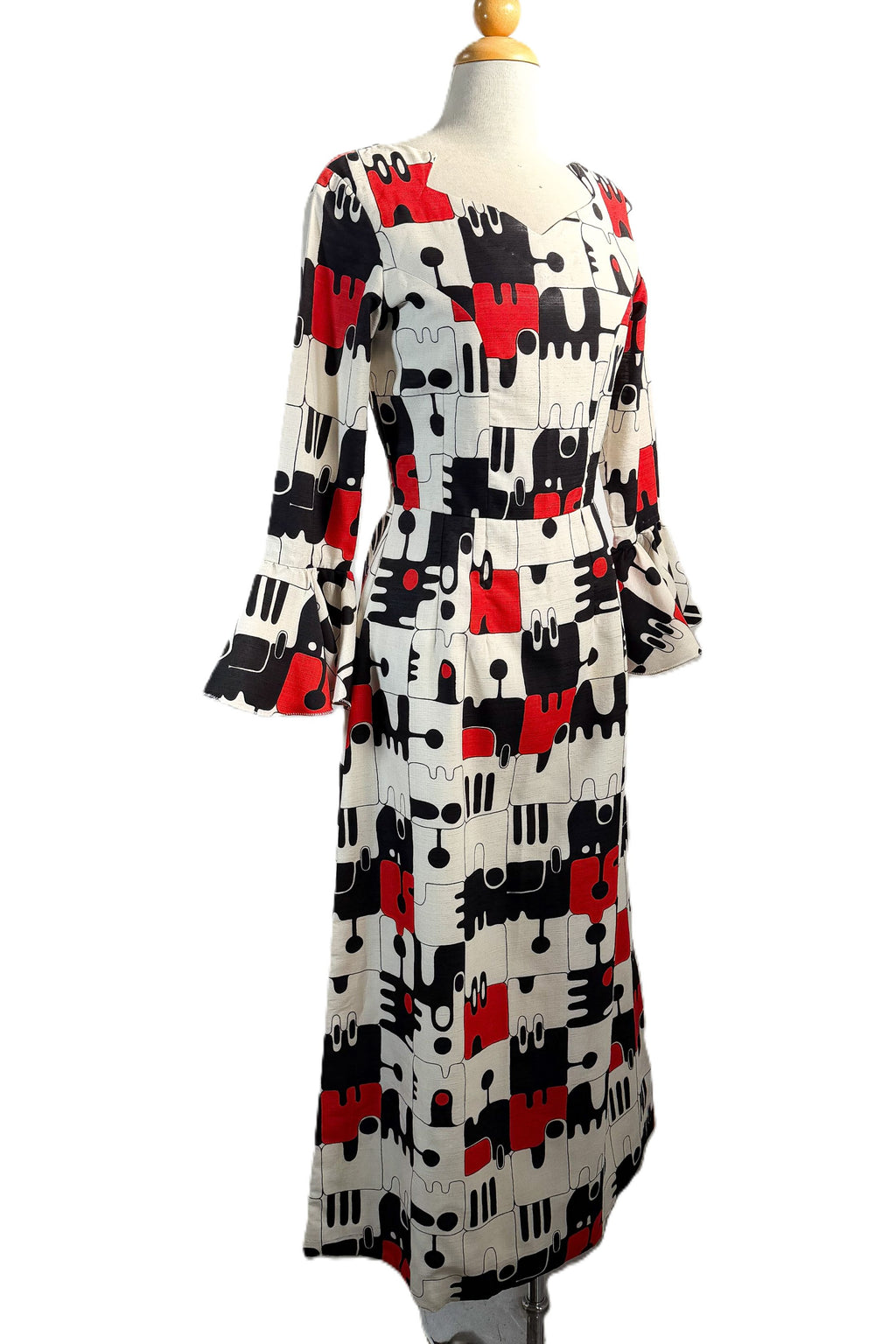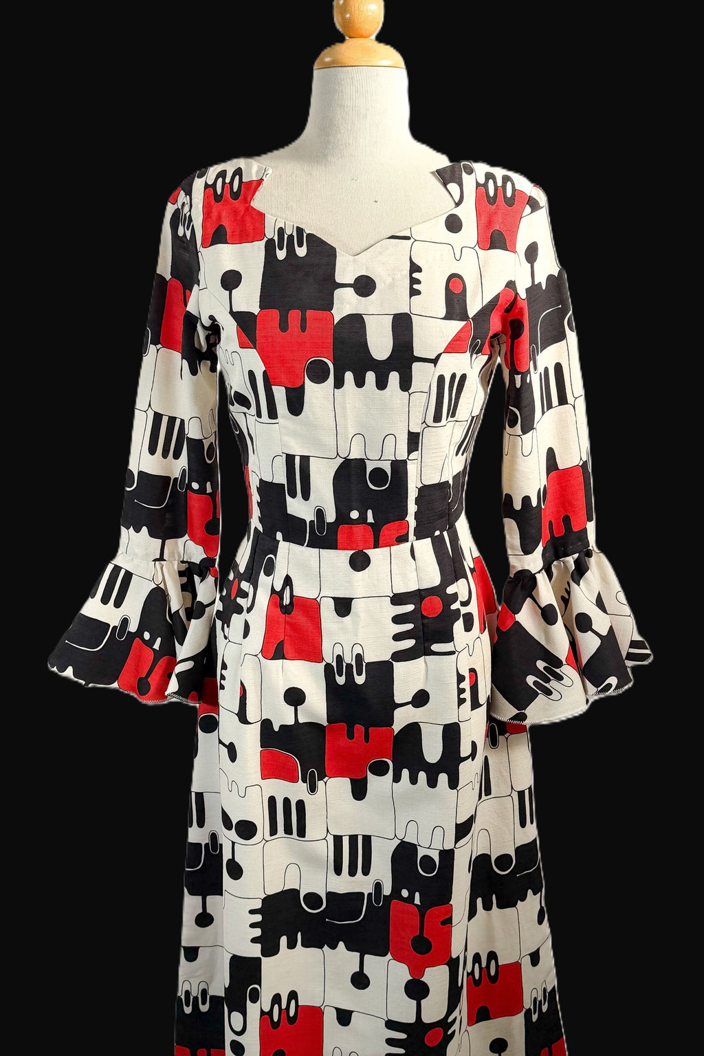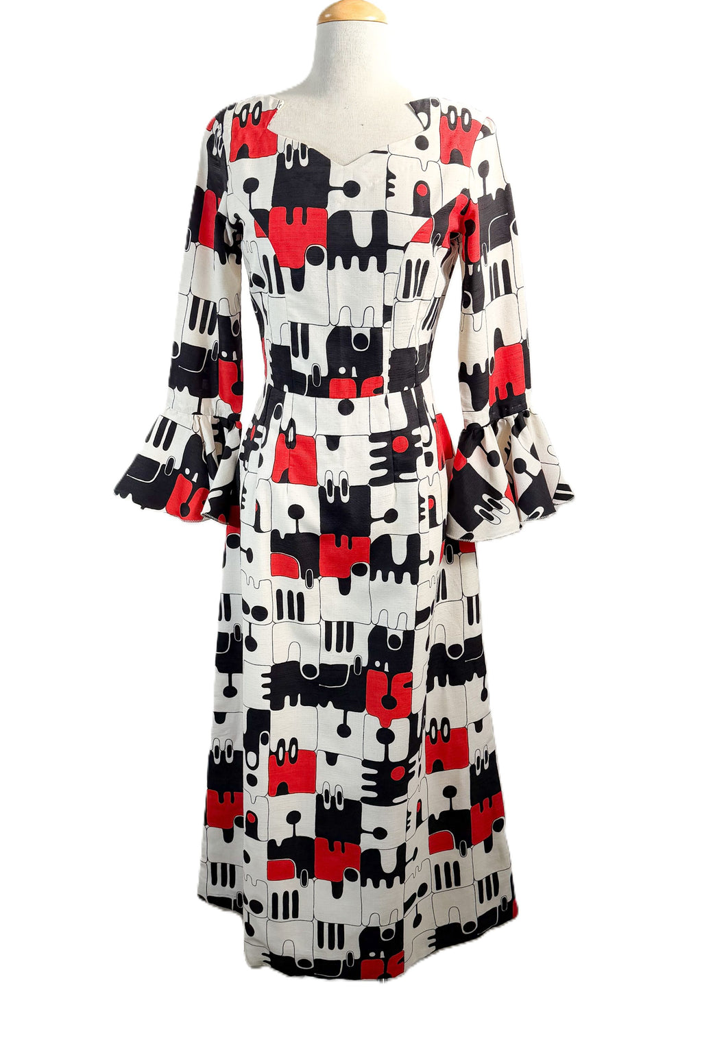 Amazing vintage 60s Mod dress with full circle ruffle sleeve.