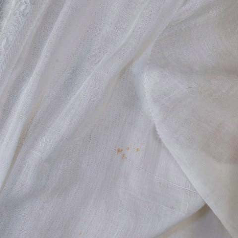 Carved mother of pearl buttons up the back. Loose fit at the front bodice with tiny gathers above the waist to provide room for the bust.