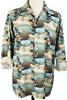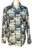 Repeating all over pattern, polyester shirt. Long sleeves.