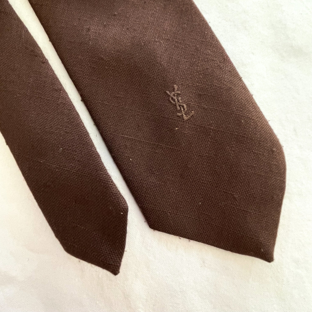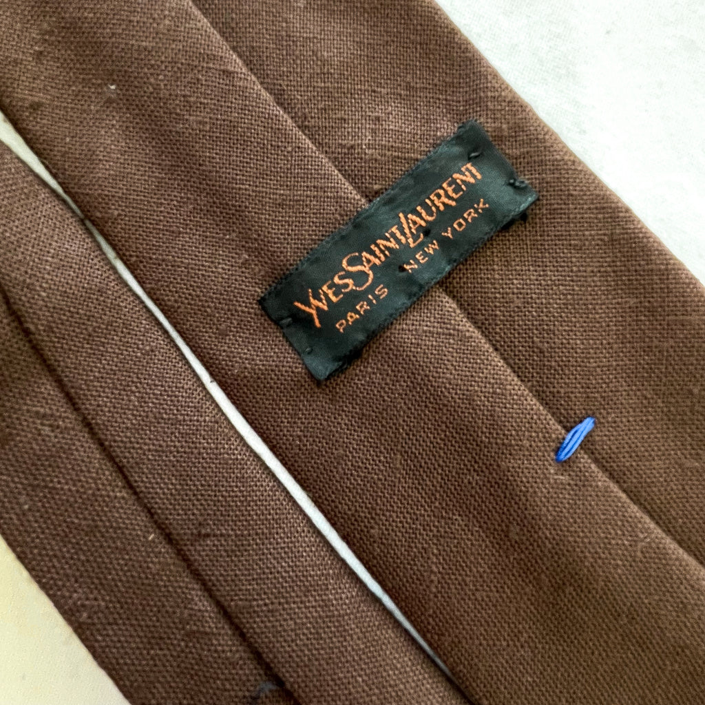 Vintage YSL Brown Linen Tie, Yves Saint Laurent Brown Tie 57" L x 3" W