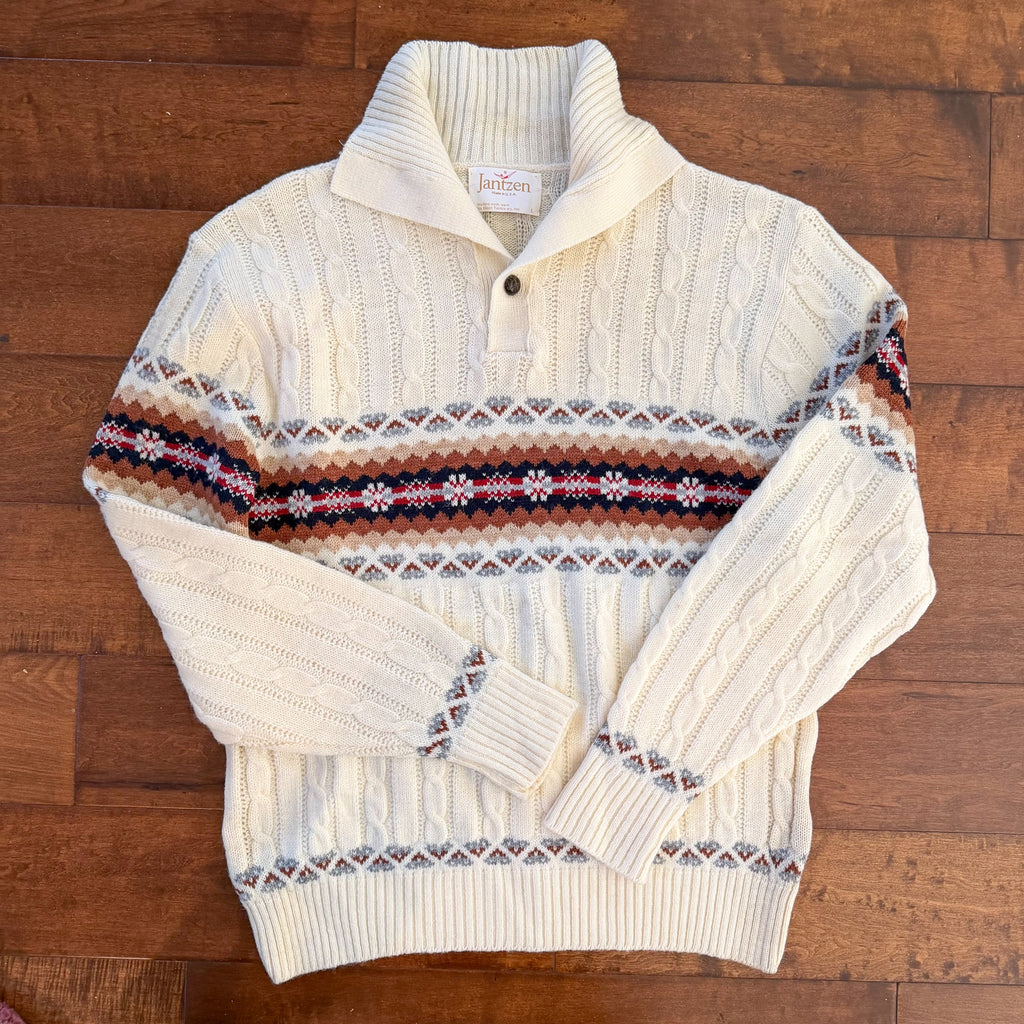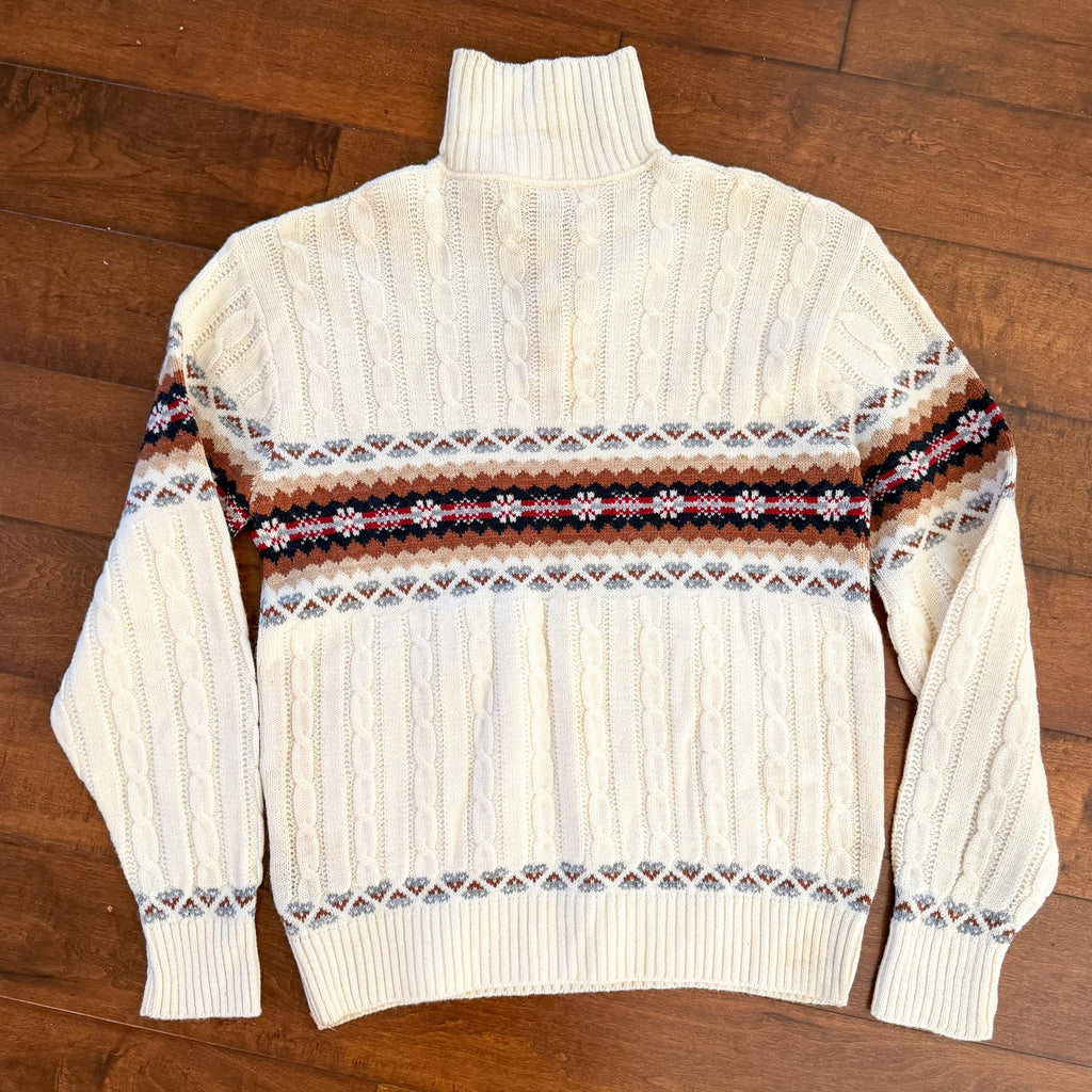 Cable knit, Faire Aisle pattern, long sleeve sweater.