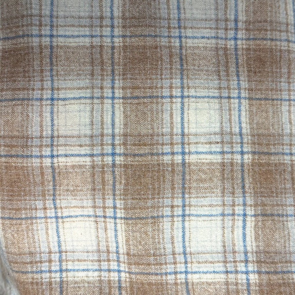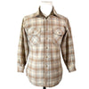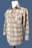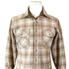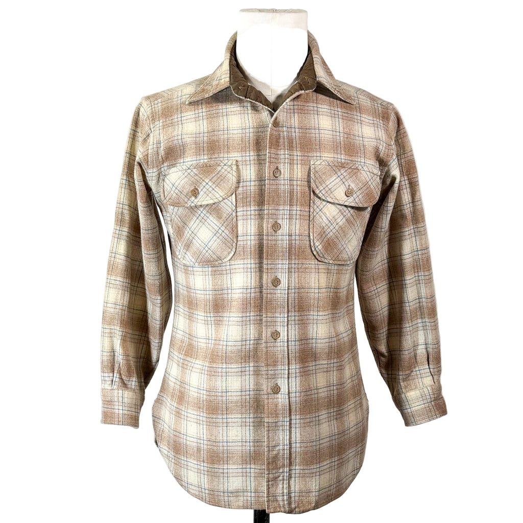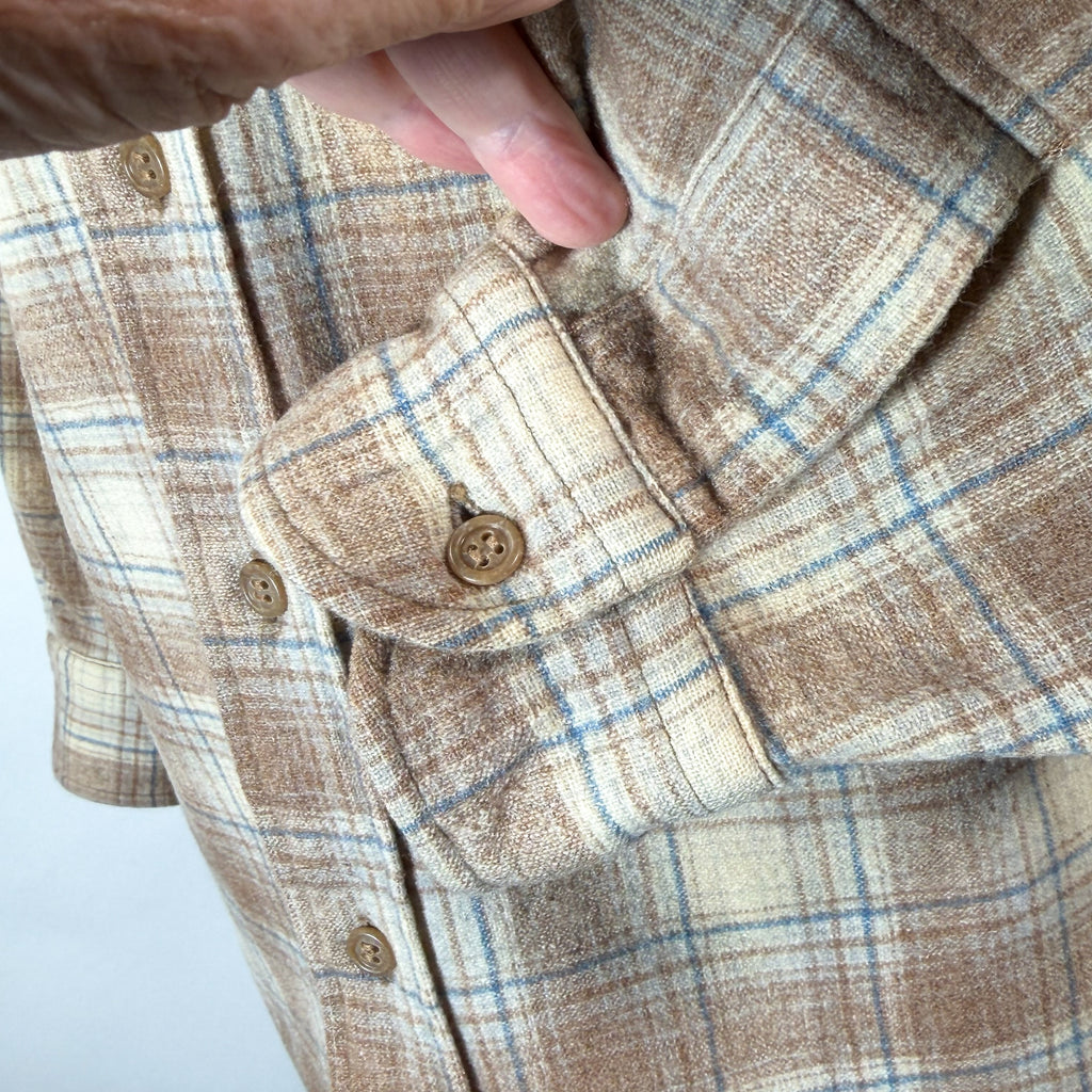 Light tan Pendleton wool plaid shirt with button patch pockets.