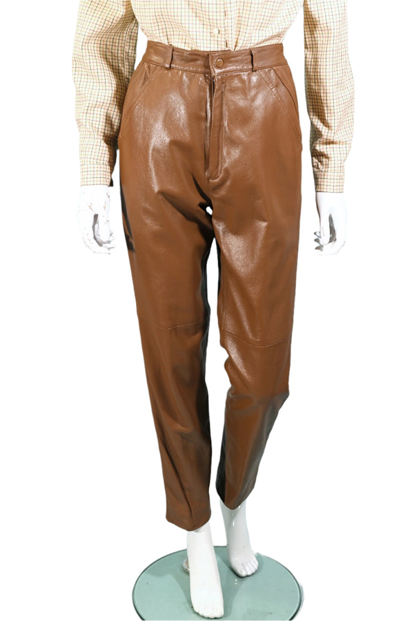 Vintage Brown Leather Pants, Slim Fit Size 6/S