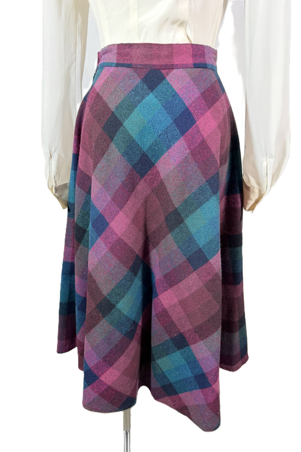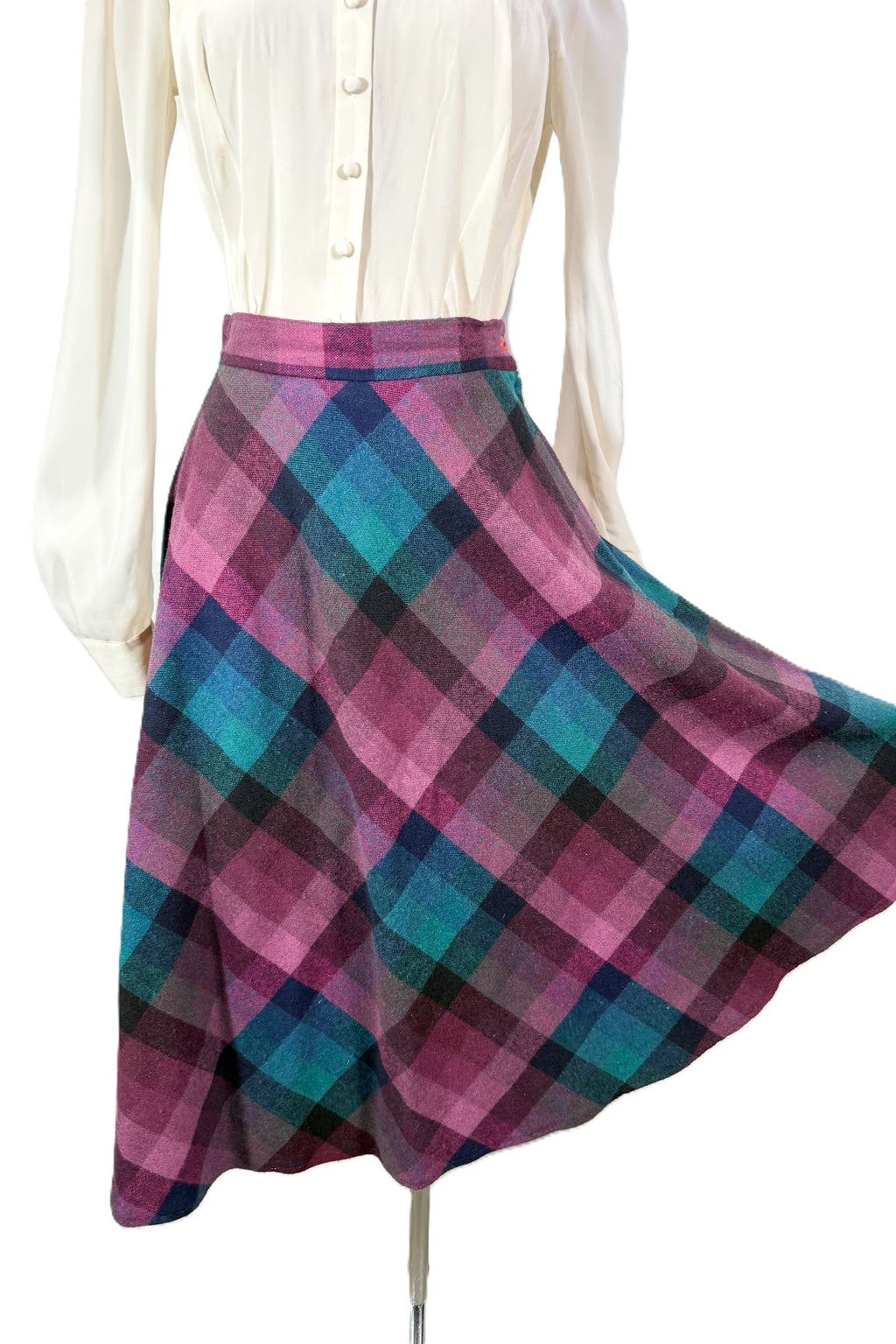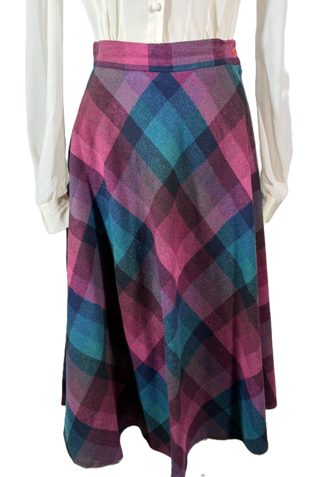 70s Nifty Buffalo Shadow Plaid Flare Skirt SZ 7