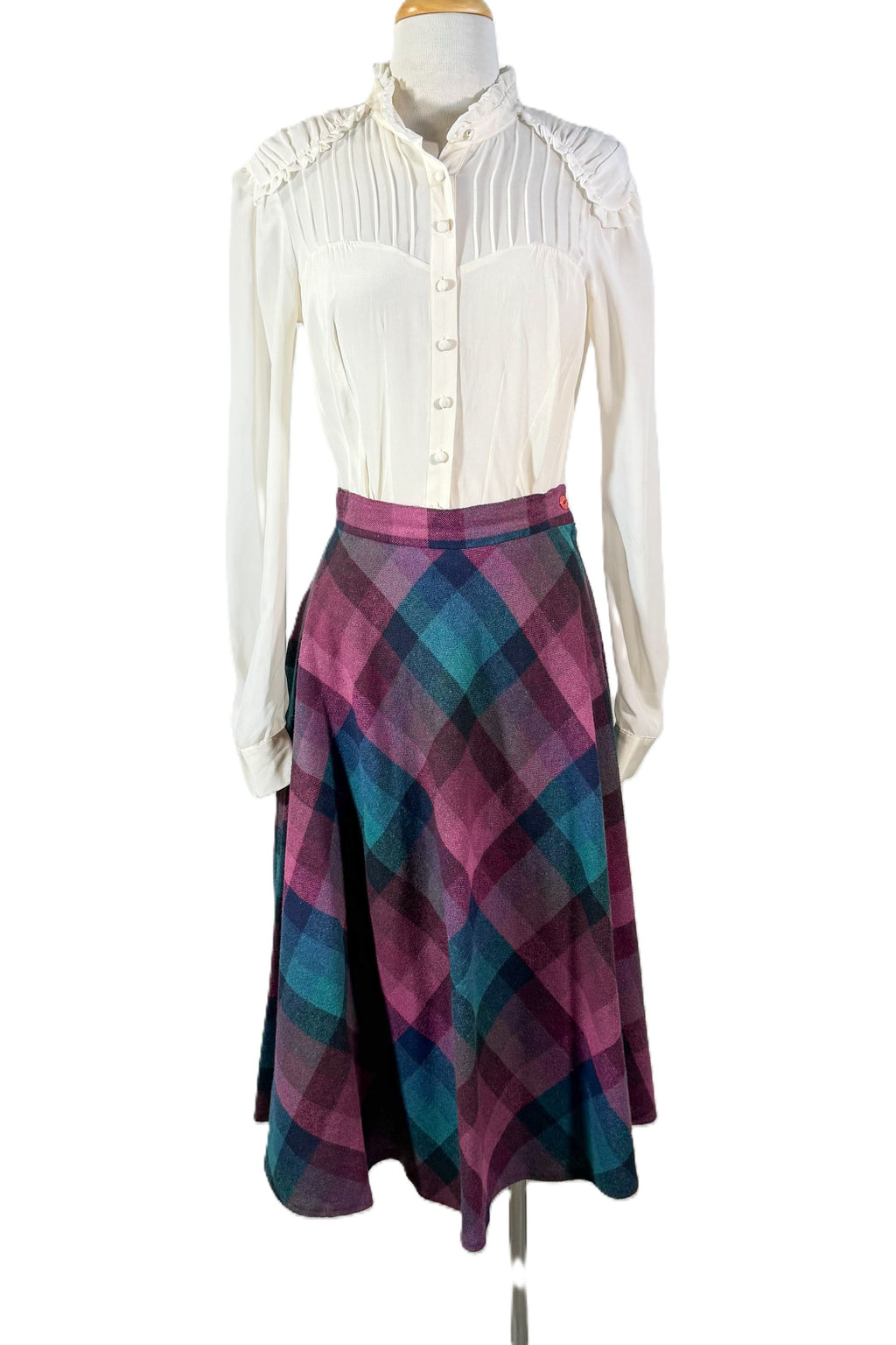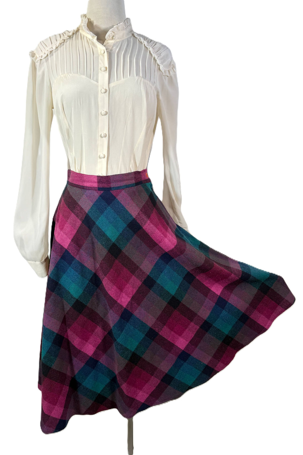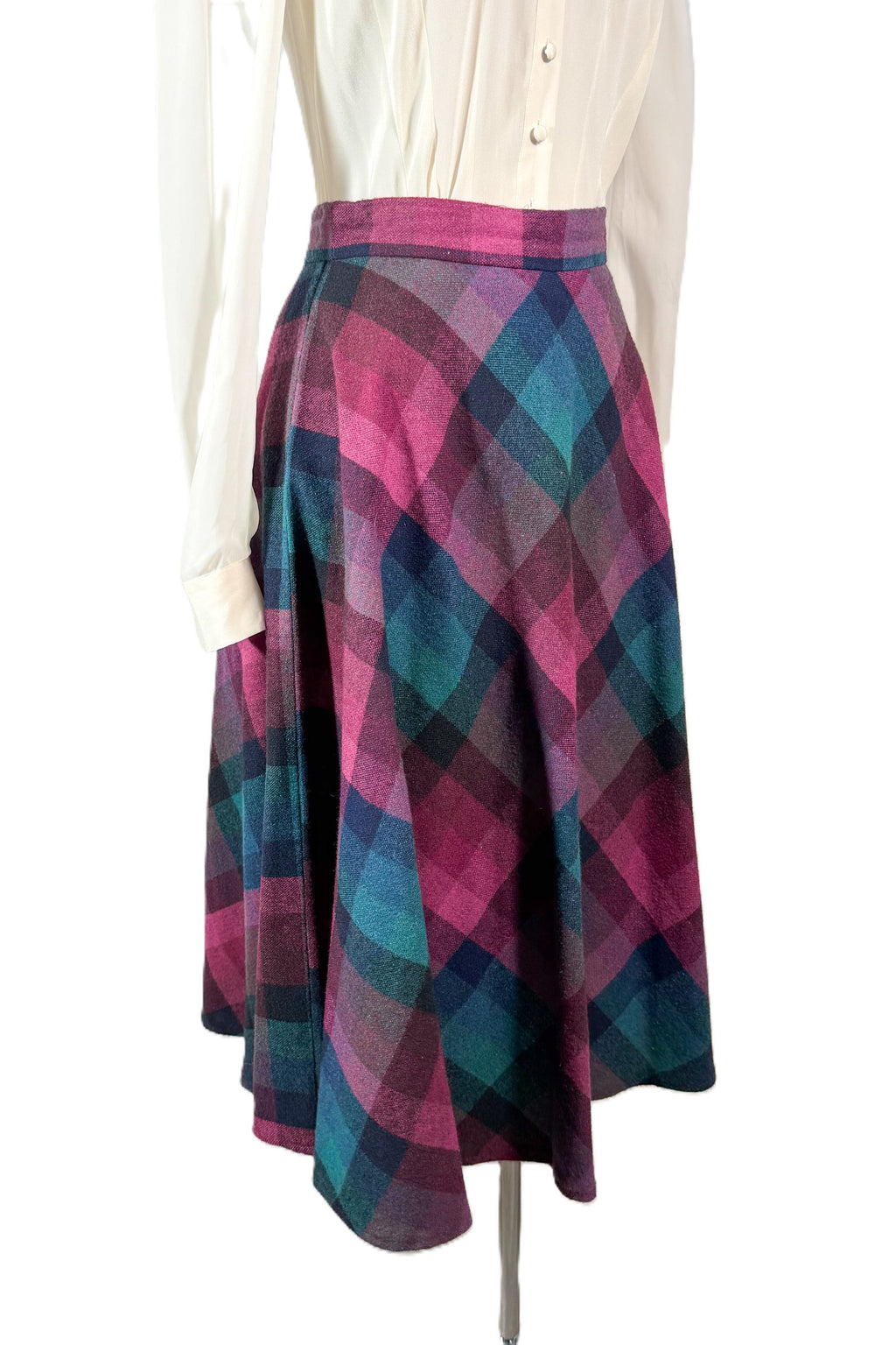 70s Nifty Buffalo Shadow Plaid Flare Skirt SZ 7