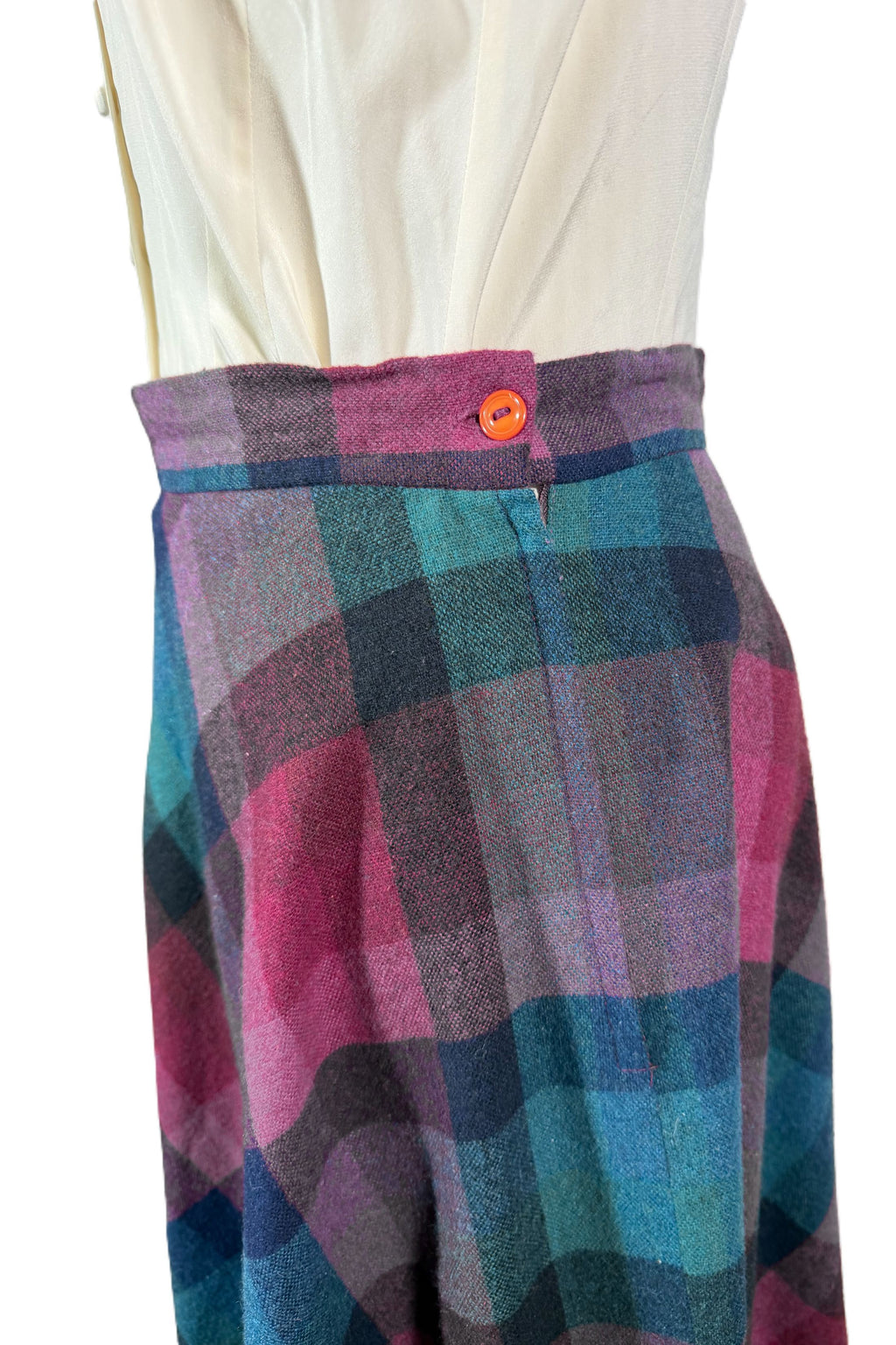 Vintage 70s colorful buffalo shadow plaid skirt with fitted waist.