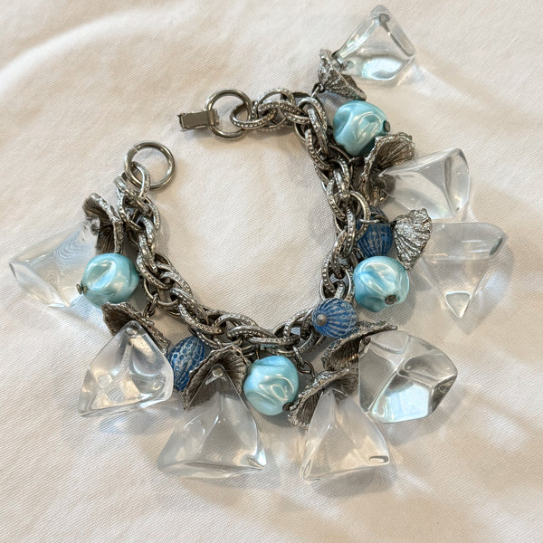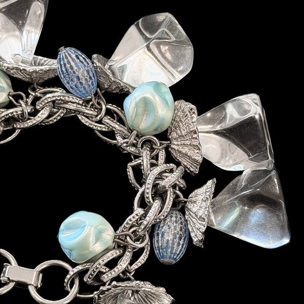 Vintage 60s Lucite Confetti Seahorse Seashell Clamper Bracelet 6"