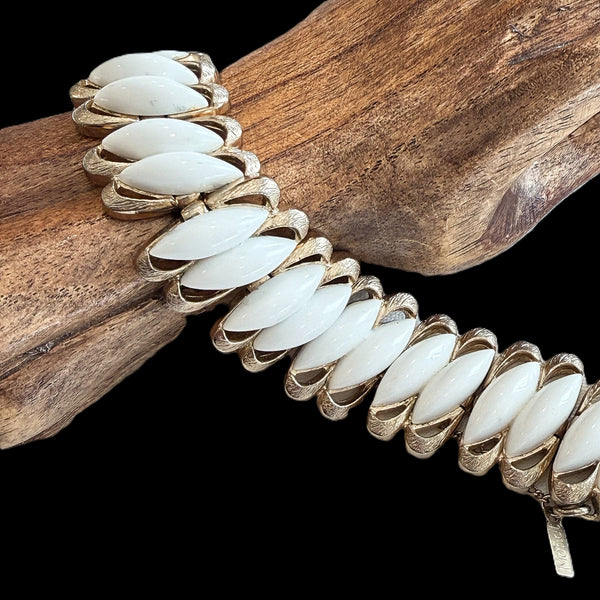 Vintage MCM Monet Milk Glass Beaded Bracelet 7 1/4"L