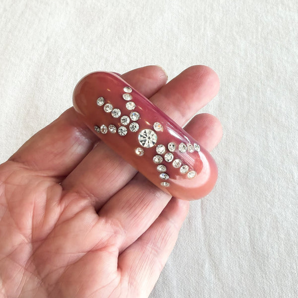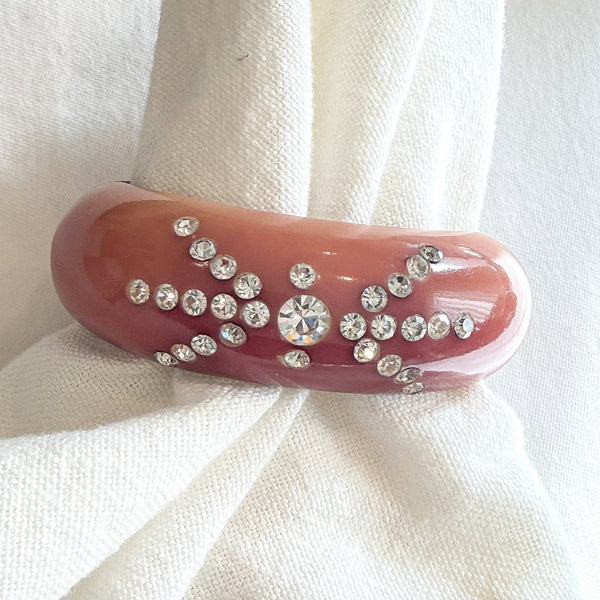 Salmon Ombre Swirl Lucite Rhinestone Clamper Bracelet S/M