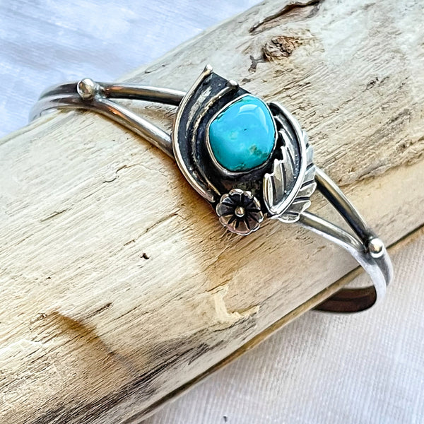 Vintage Silver Turquoise Ring, Southwestern Native American Leaf Ring Size 5 3/4
