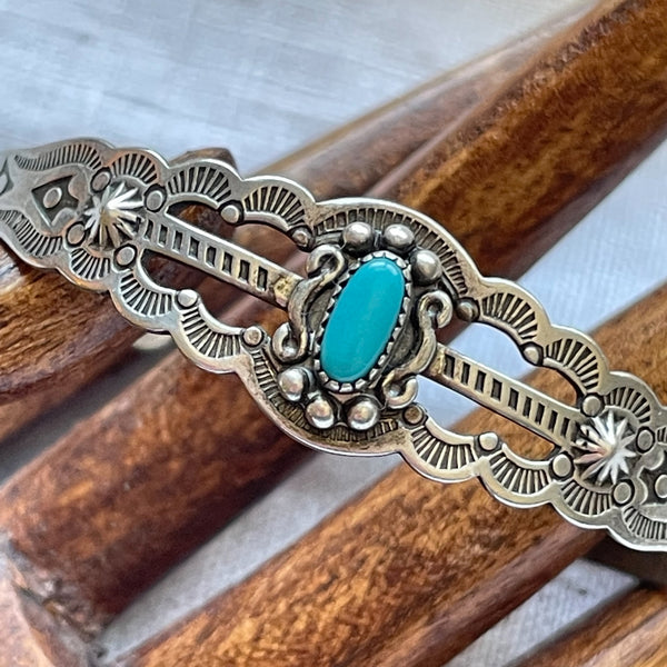 James Shay Navajo Sterling Turquoise Bracelet Signed JS