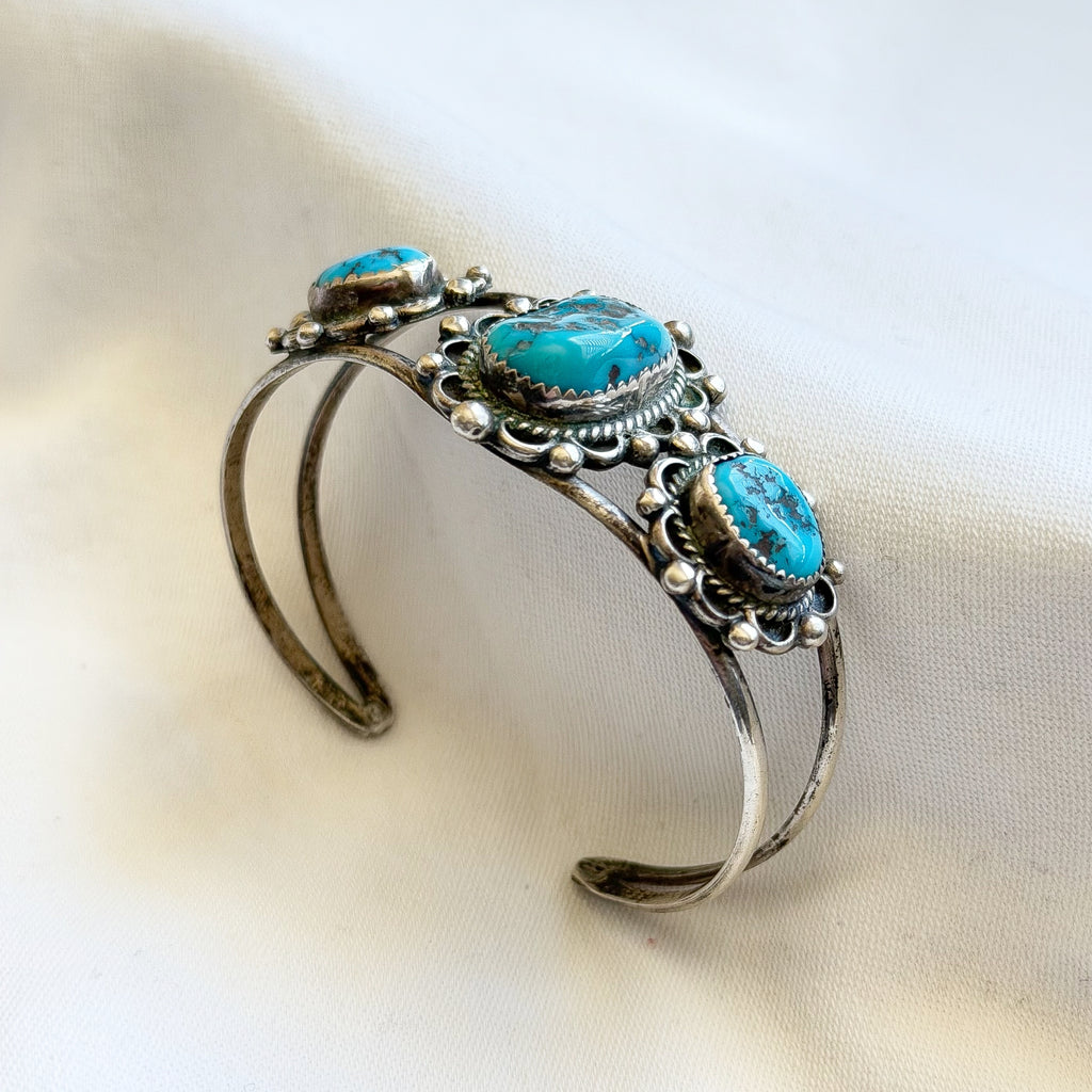 Beautiful old pawn Kingman nugget Turquoise silver bracelet.