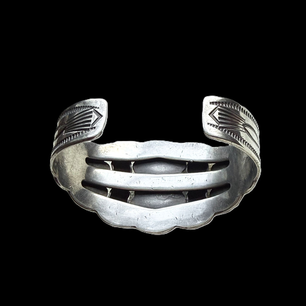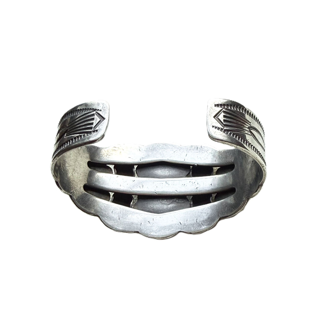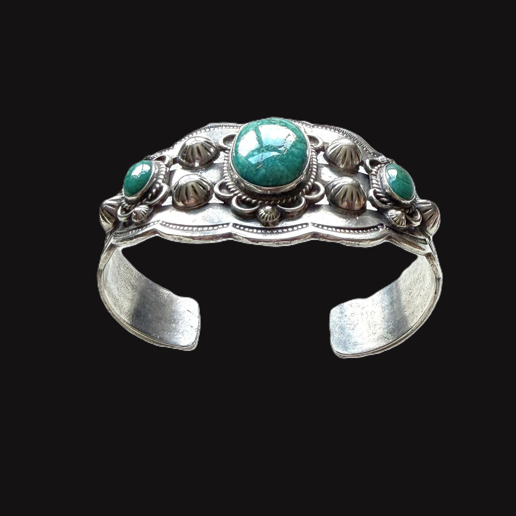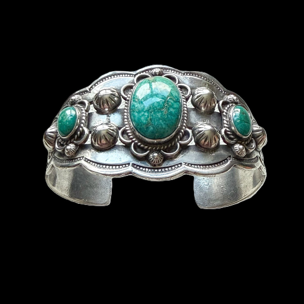 Gorgeous vintage sterling silver cuff bracelet with 3 oval turquoise stones.