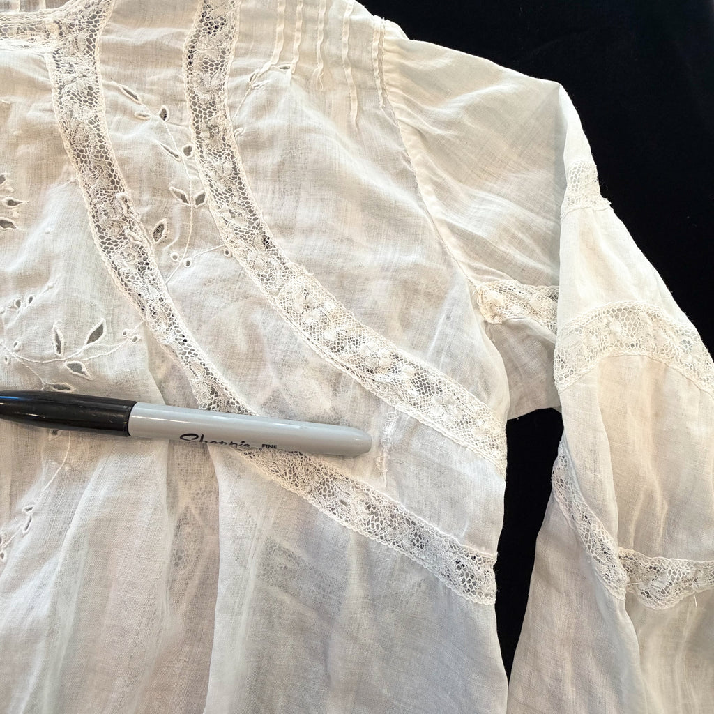 This is an antique blouse, it is not appropriate for daily wear, as it is delicate. It is over 100 years old it is delicate and should be worn very gently.