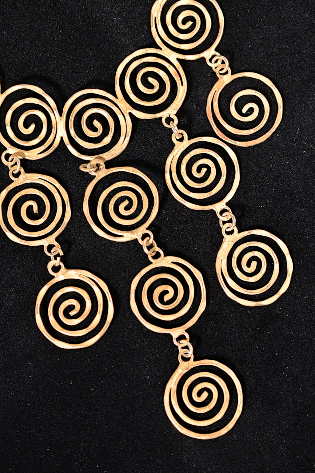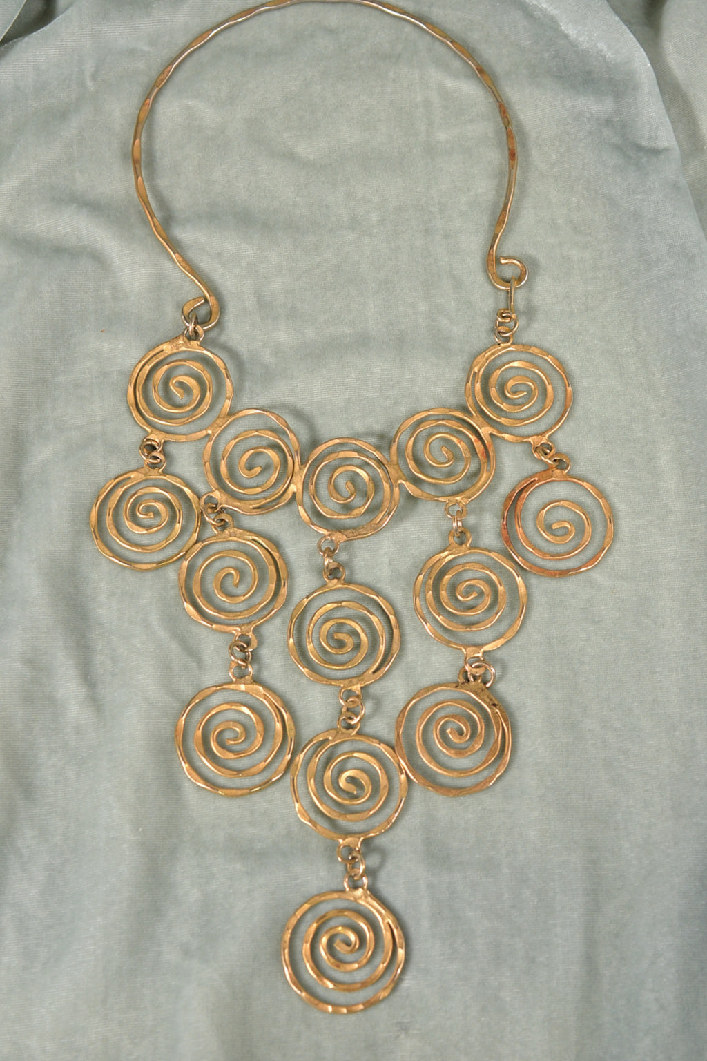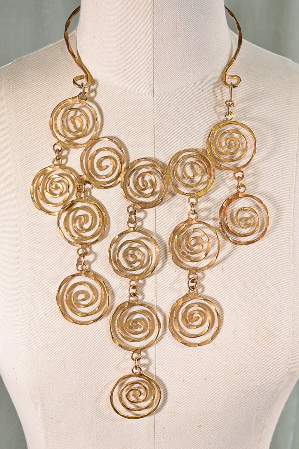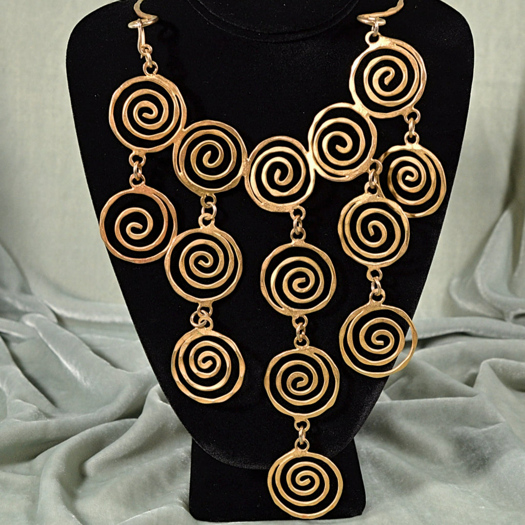 Vintage gold-toned Brutalist Modernist large pendant necklace.