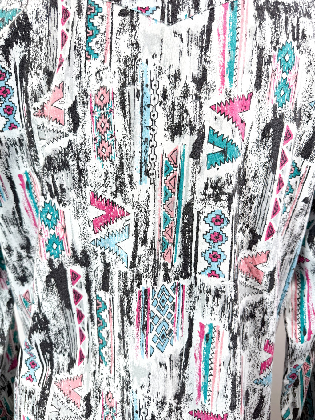 Vintage 80s novelty southwestern print shirt with button pockets.