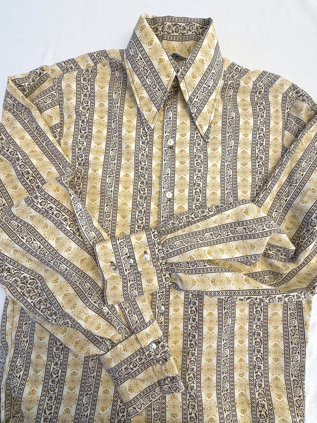 Pointed collar, hippie style shirt.