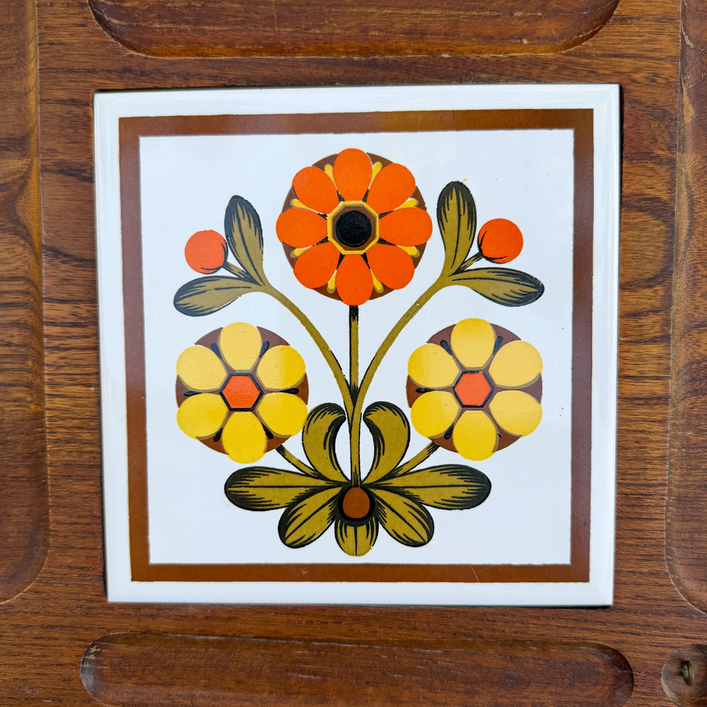The tile has cute flowers in bright colors.