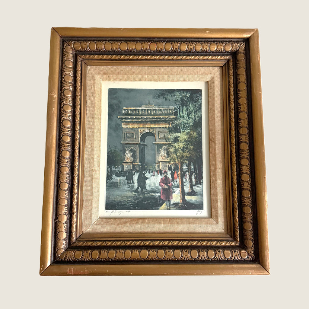 Lovely etching of Paris at night, it looks like it might be raining in the shot.