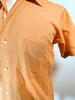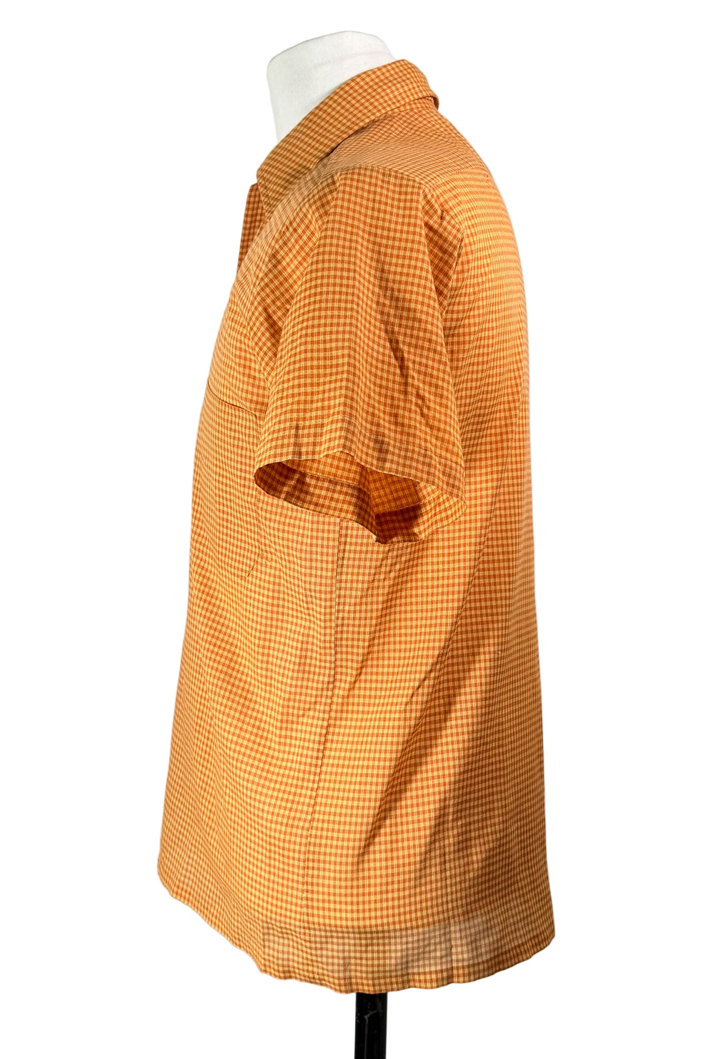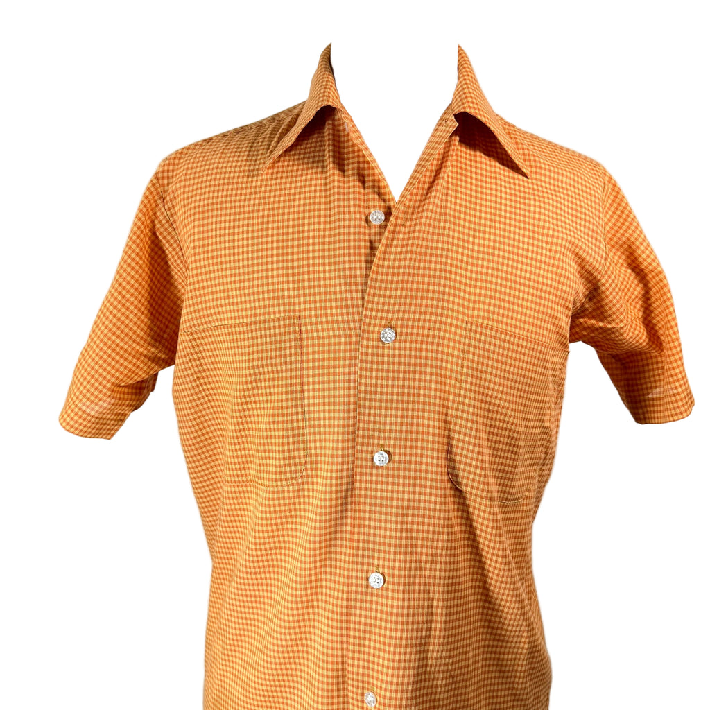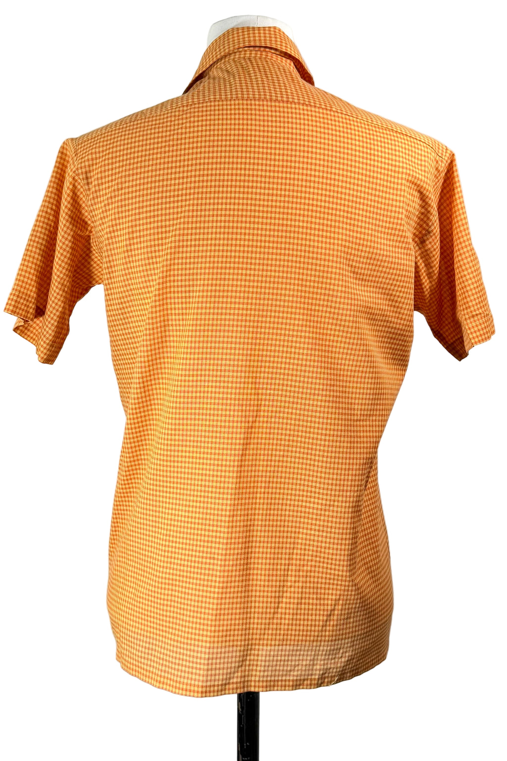 Orange, yellow check. Permanent press. Lightweight fabric.