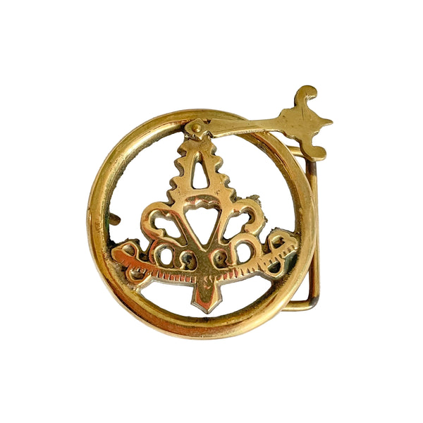 Vintage Brass Oval Belt Buckle, Raised Design, Nice Patina & Details, WF-103
