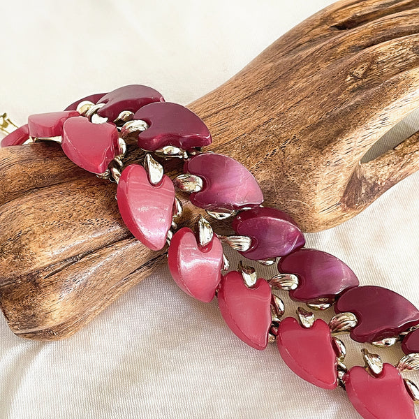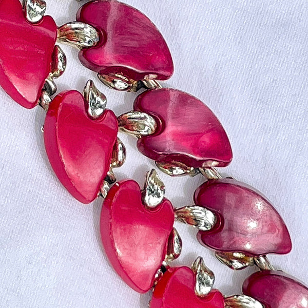 50s Lucite Thermoset Bracelet, Red Burgundy Gold Bracelet 7"L