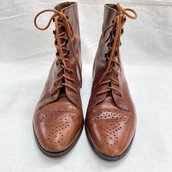SOLD Vintage 80s Lace Up Granny Ankle Boots, Wingtip Oxford Booties Etienne Aigner
