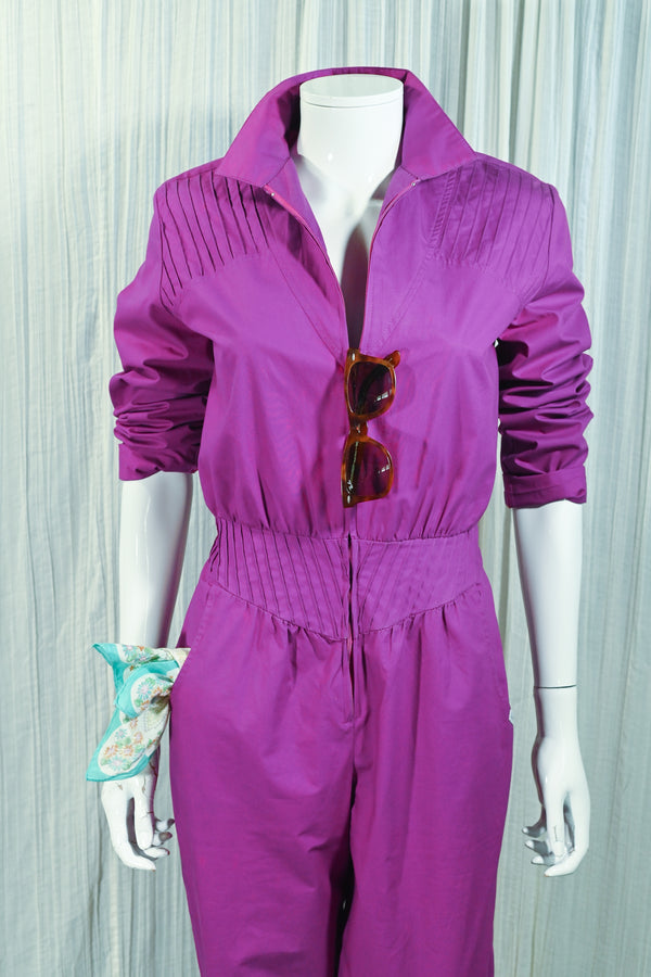 SOLD Vintage 80s Magenta Jumpsuit, New Wave Jumpsuit by Saint Germain S