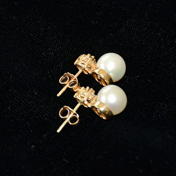 SOLD Vintage 90s Cultured Pearl Diamond 14K Gold Earrings