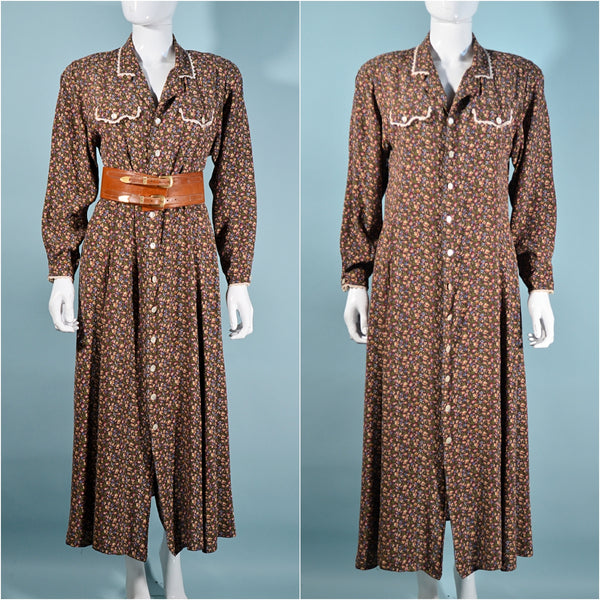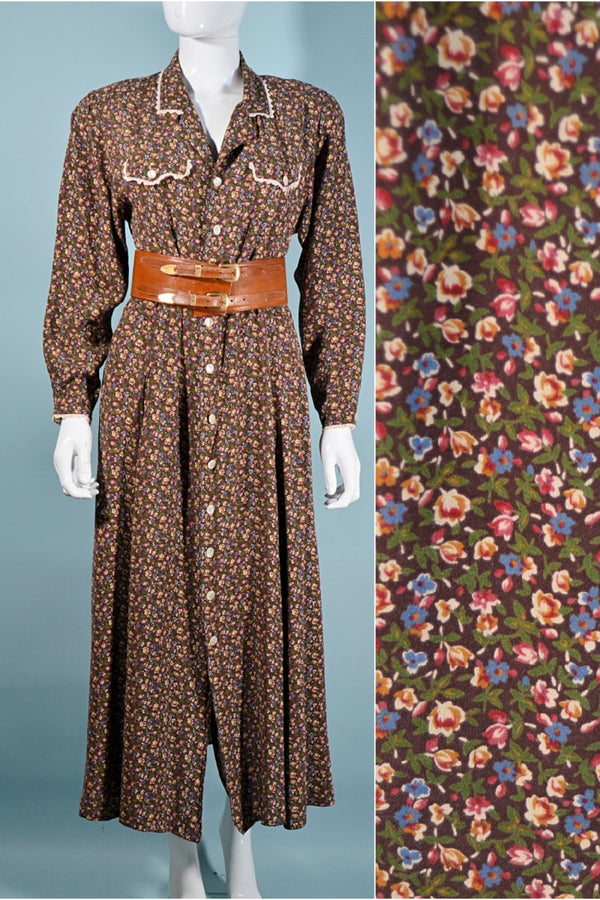 SOLD Vintage 90s Cottagecore Calico Print Midi Dress M/L