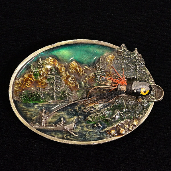 SOLD Vintage 80s Bergamot Brass Works Fishing Fisherman Lure Kitsch Belt Buckle