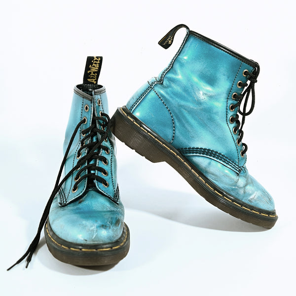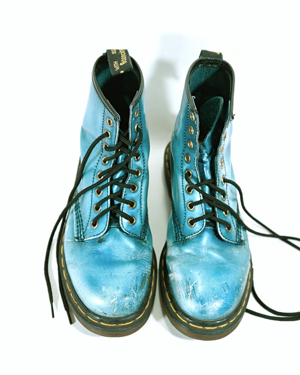 SOLD Vintage 90s Dr Martens Metallic Aqua Boots, Made in England UK6/US 8