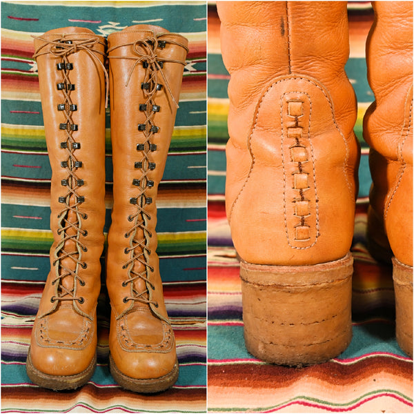SOLD Vintage 70s Zodiac Lace Up Boots, 60s Granny Boots 8M
