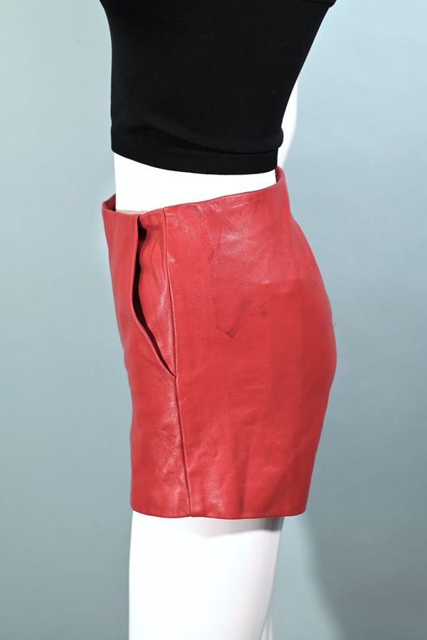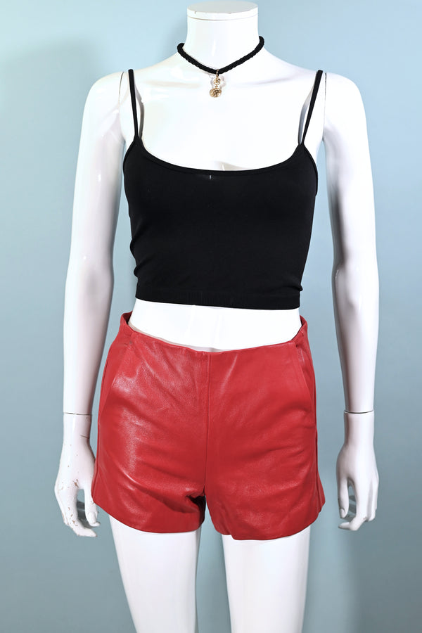 SOLD Vintage 90s Red Leather Shorts, Unworn w/Original Tags, DL David Lerner XS